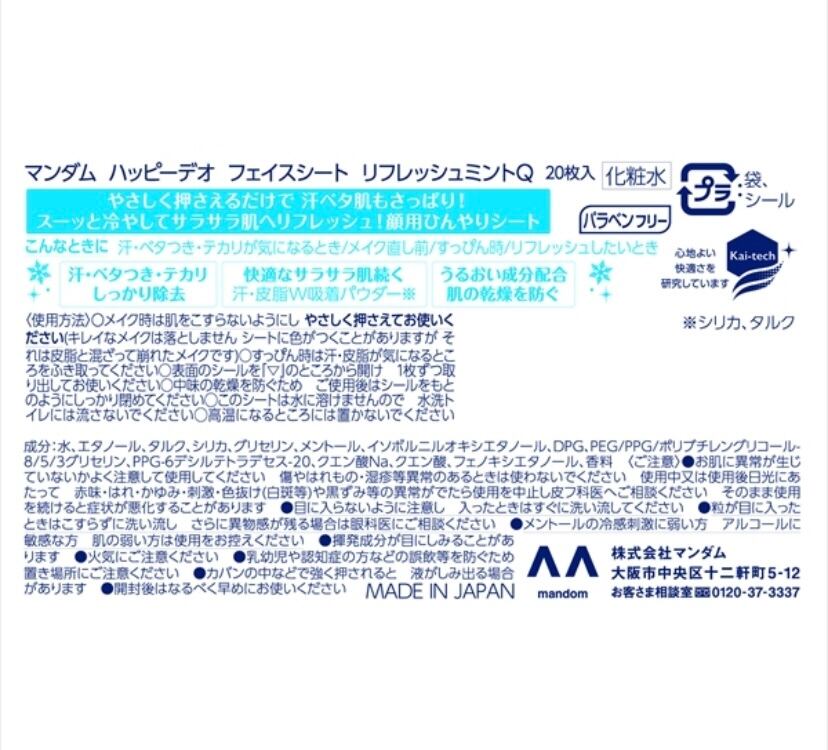 マンダム ハッピーデオ フェイスシート リフレッシュミント【制汗剤・デオドラント】